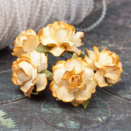 Букет паперових троянд ручної роботи кольору слонової кістки. У букеті 5 бутонів троянд діаметром 30мм. Довжина стебла 6см.