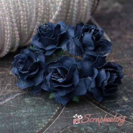 Букет паперових троянд ручної роботи темно-синього кольору. У букеті 5 бутонів троянд діаметром 30мм. Довжина стебла 6см.