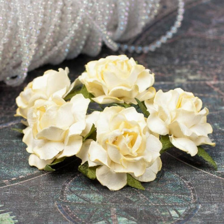 Букет паперових троянд ручної роботи жовтого кольору. У букеті 5 бутонів троянд діаметром 30мм. Довжина стебла 6см.