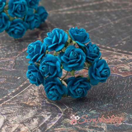Букет паперових троянд ручної роботи темно-бірюзового кольору. У букеті 10 бутонів троянд діаметром 10мм. Довжина стебла 6...7см.