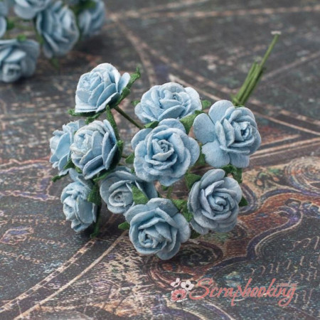 Букет паперових троянд ручної роботи блакитного кольору. У букеті 10 бутонів троянд діаметром 10мм. Довжина стебла 6...7см.