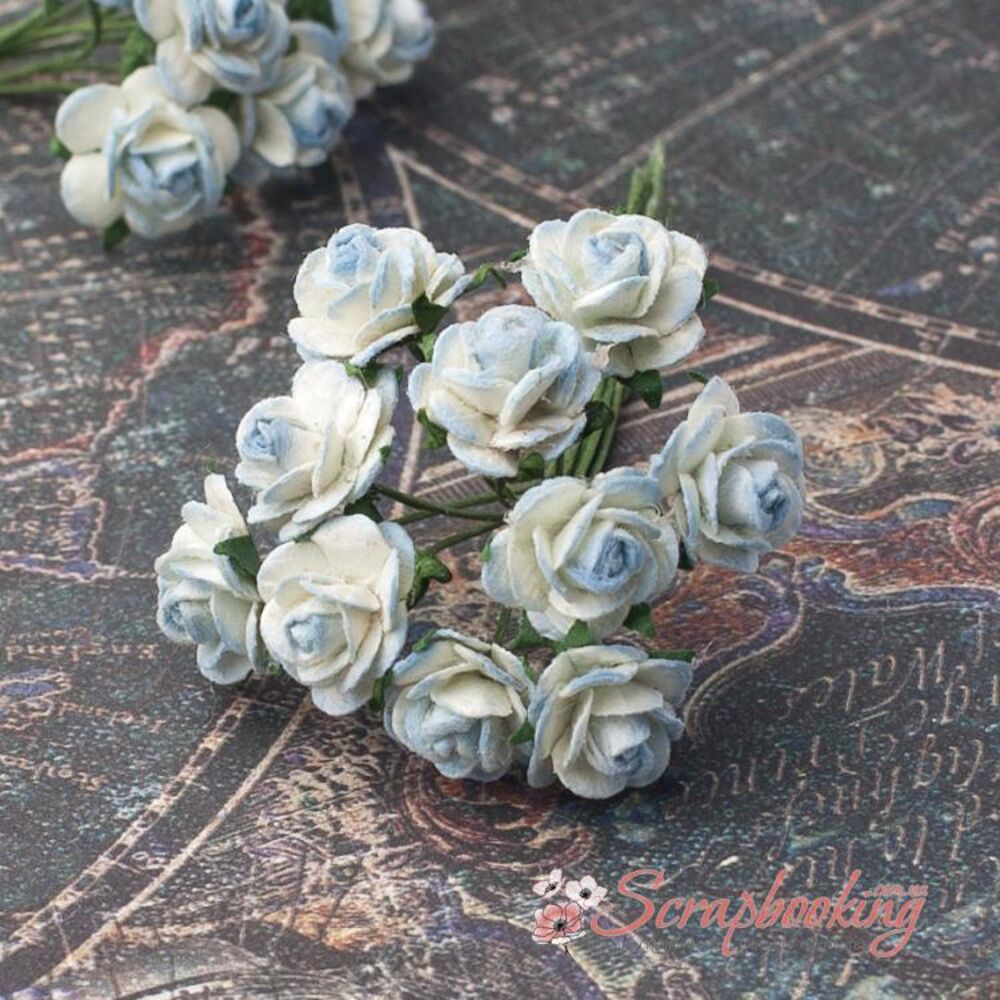 Букет паперових троянд ручної роботи світло-блакитного кольору. У букеті 10 бутонів троянд діаметром 10мм. Довжина стебла 6...7см.