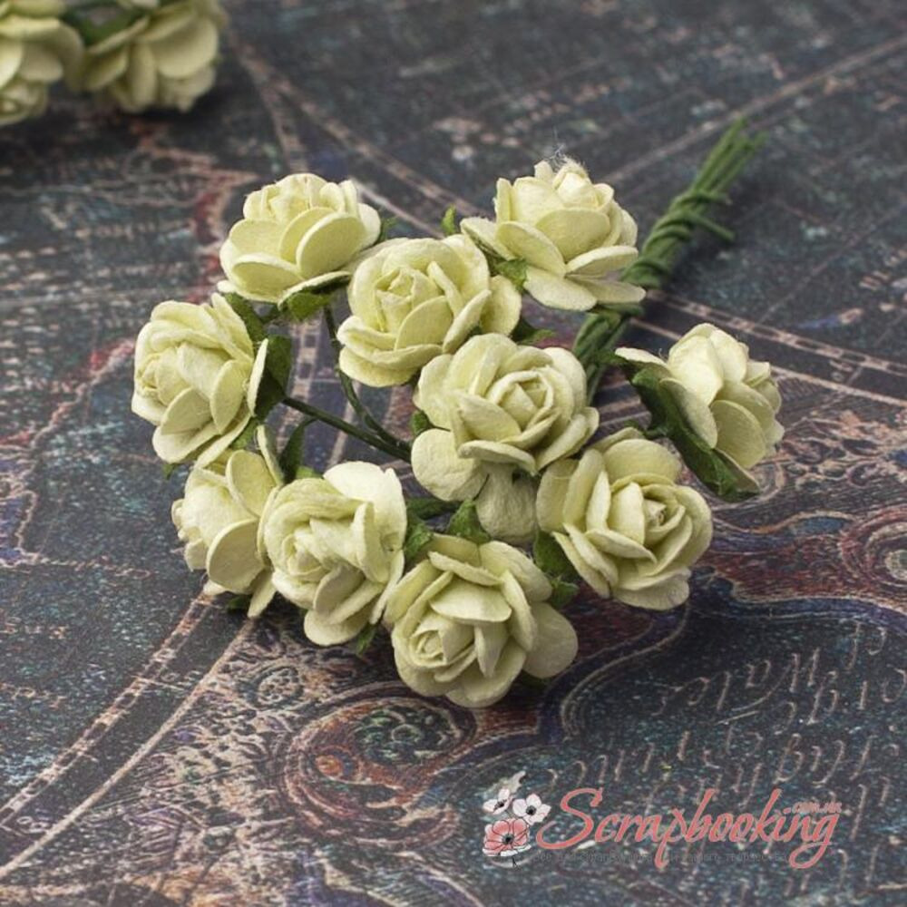 Букет паперових троянд ручної роботи лимонного кольору. У букеті 10 бутонів троянд діаметром 10мм. Довжина стебла 6...7см.