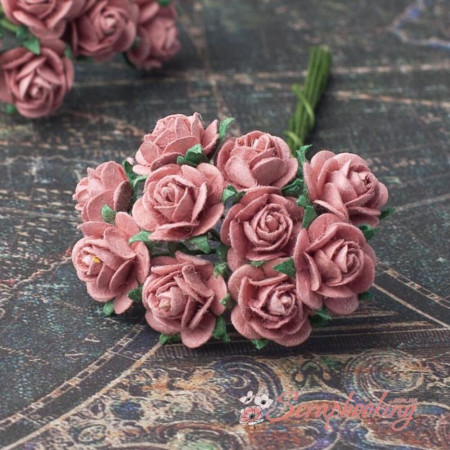 Букет паперових троянд ручної роботи пюсового кольору. У букеті 10 бутонів троянд діаметром 10мм. Довжина стебла 6...7см.