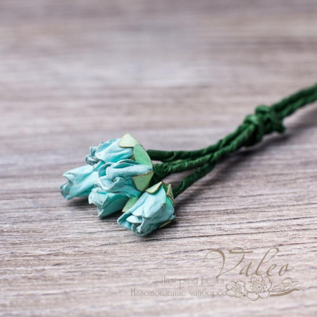 Букет троянд ручної роботи бірюзового кольору виробника Valeo. У букеті 5 троянд. Розмір бутону 13мм.