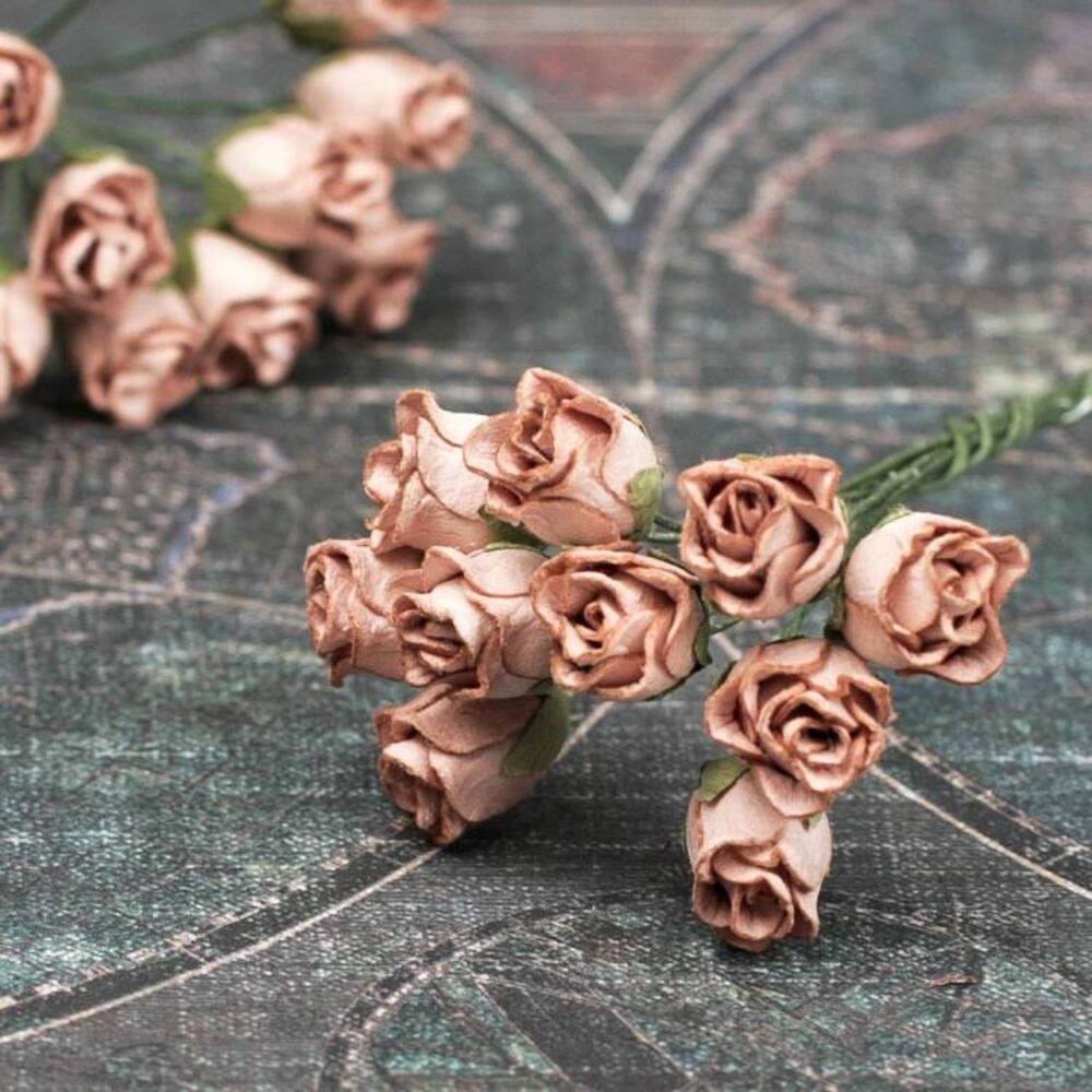 Букет з паперових троянд ручної роботи какао. У букеті 10 бутонів троянд діаметром 10мм. Довжина стебла 8см.
