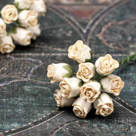 Букет з паперових троянд ручної роботи кремового кольору. У букеті 10 бутонів троянд розміром 13мм. Довжина стебла 8см.