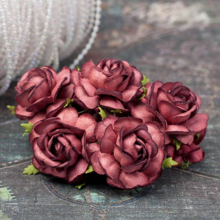 Букет паперових чайних троянд ручної роботи бордового кольору. У букеті 5 бутонів троянд діаметром 40мм. Довжина стебла 6см.
