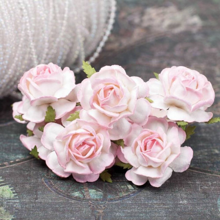 Букет паперових чайних троянд ручної роботи ніжного рожевого кольору. У букеті 5 бутонів троянд діаметром 40мм. Довжина стебла 6см.