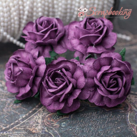Букет паперових чайних троянд ручної роботи сливового кольору. У букеті 5 бутонів троянд діаметром 40мм. Довжина стебла 6см.