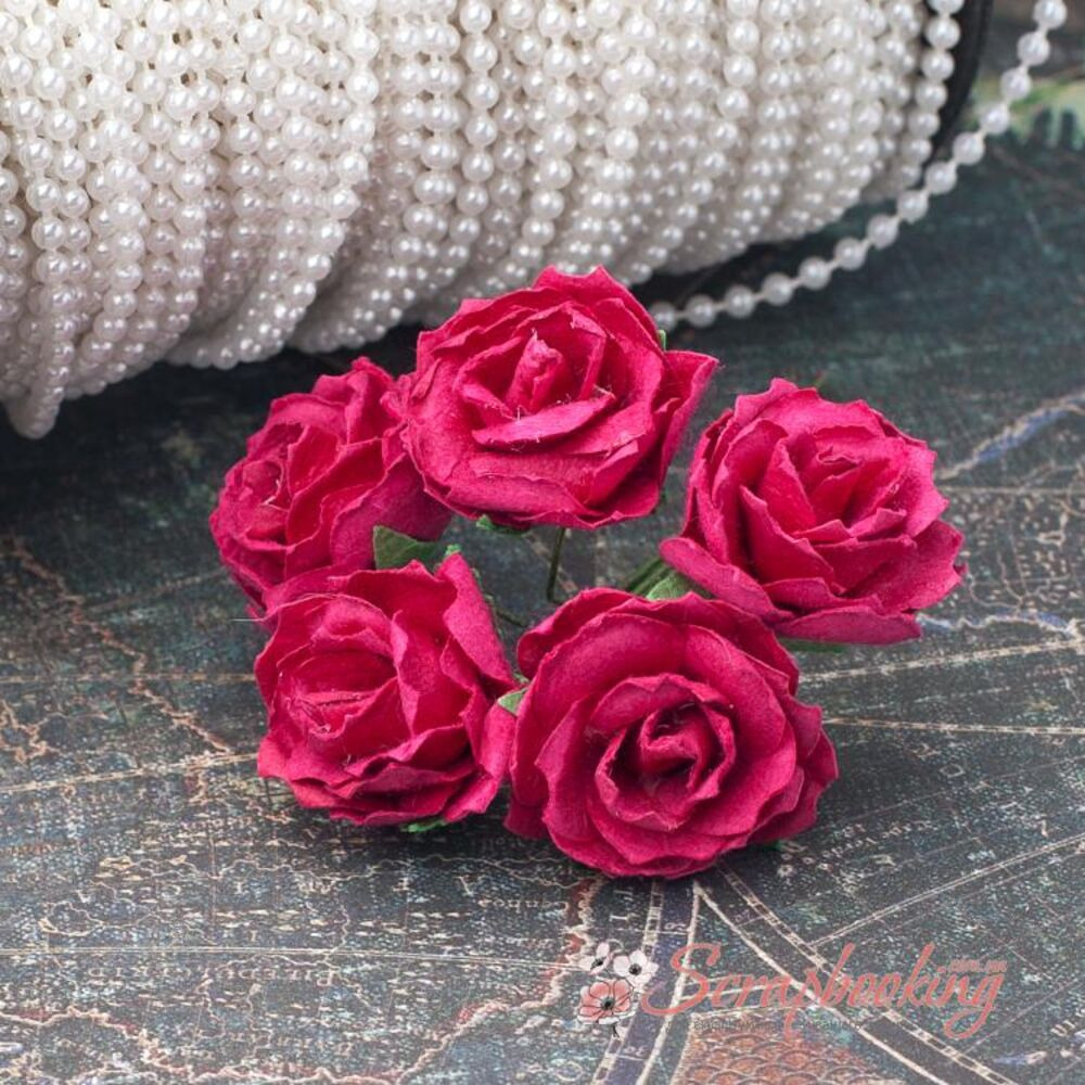 Букет паперових диких троянд ручної роботи кольору фуксії. У букеті 5 бутонів троянд діаметром 30мм. Довжина стебла 6..8см.