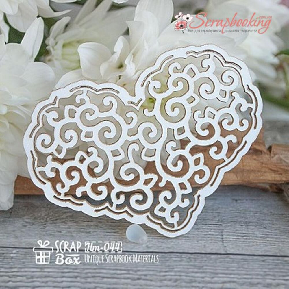 Чіпборд Scrapbox Ажурне серце 044, 80*60мм виготовлено з пивного картону білого кольору. Товщина картону 2мм. Елементи виготовлені за допомогою лазерного різання. Чіпборди широко застосовуються в скрапбуку як декоративні елементи, які можна оформляти будь-якими способами: декупаж, штампінг, кракелюр, емброссинг та багато іншого.