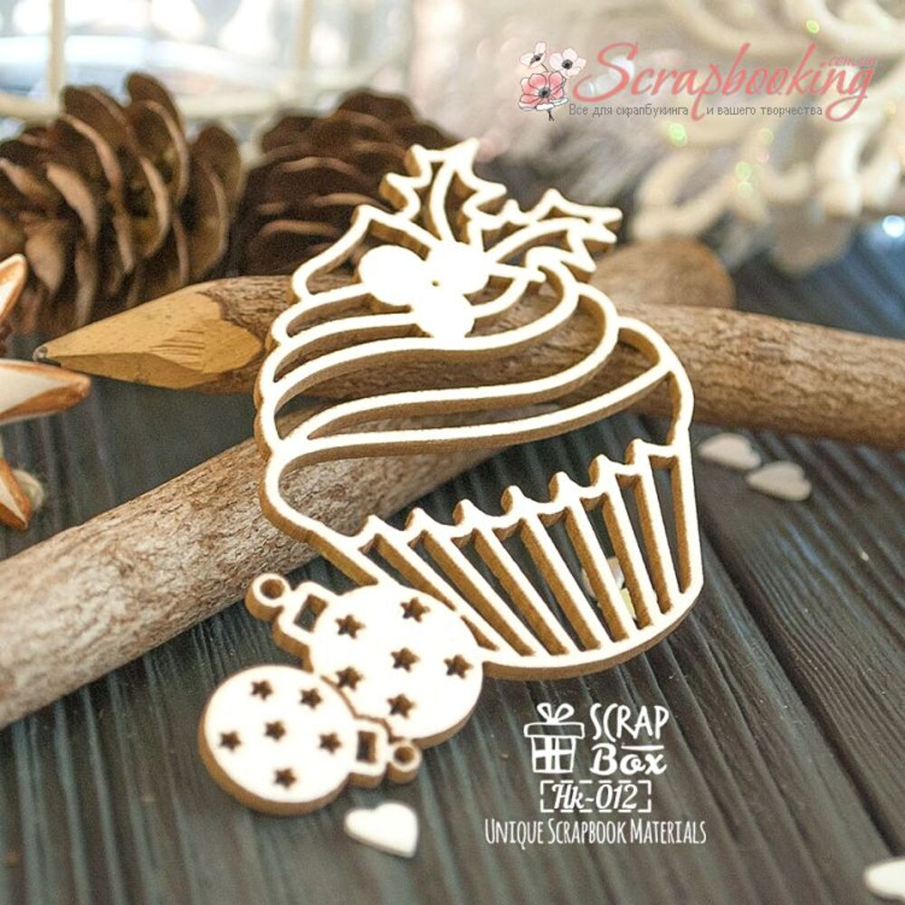 Декоративний чіпборд Новорічний капкейк з гостролистом та ялинковими іграшками виробника Scrapbox виготовлений із пивного картону білого кольору. Товщина картону 2мм. Елементи виготовлені за допомогою лазерного різання. Чіпборди широко застосовуються в скрапбуку як декоративні елементи, які можна оформляти будь-якими способами: декупаж, штампінг, кракелюр, емброссинг та багато іншого.