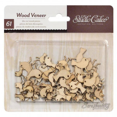 Набір дерев'яних чіпбордів Studio Calico "Wood Veneer" - Tweets, 61 шт, розмір від 1.3 до 2.5 см, 330052. Набір включає 61 дерев'яну висічку-чіпборд, виготовлених з дерева за допомогою лазерної технології