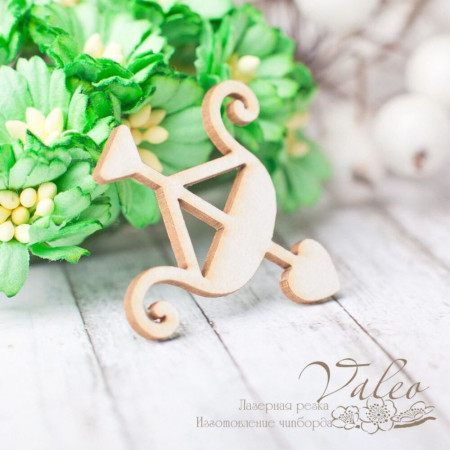 Чіпборд Valeo Арбалет 37*39мм V2383 виготовлений із пивного картону молочного кольору. Товщина картону 1,5 мм. Краї чисті, світло-коричневі. Застосовується як декоративні елементи при виготовленні альбомів, листівок, запрошень