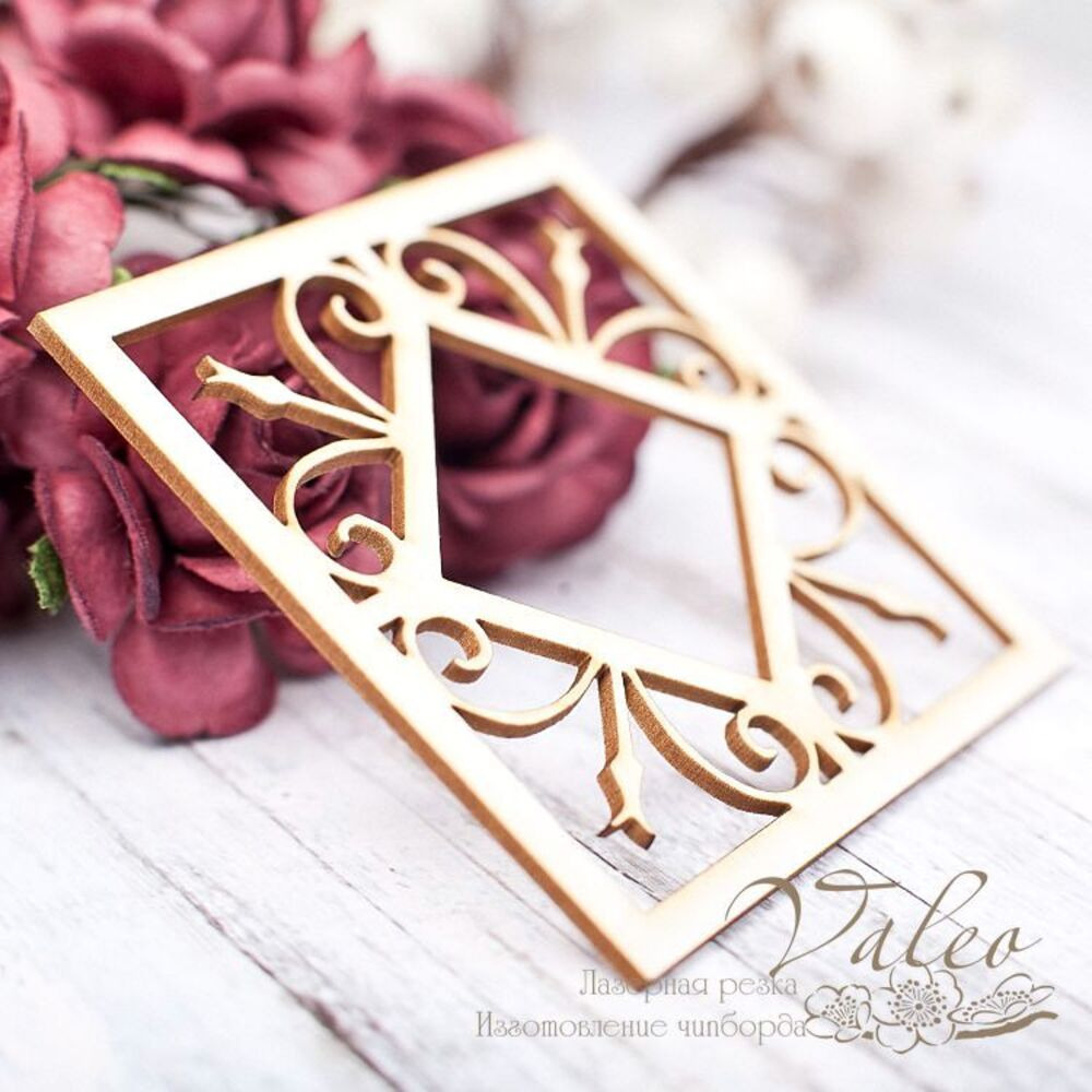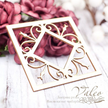 Чіпборд Valeo Ажурна рамка 62*62мм V1668 виготовлена з пивного картону молочного кольору. Товщина картону 1,5 мм. Краї чисті, світло-коричневі. Застосовується як декоративні елементи при виготовленні альбомів, листівок, запрошень