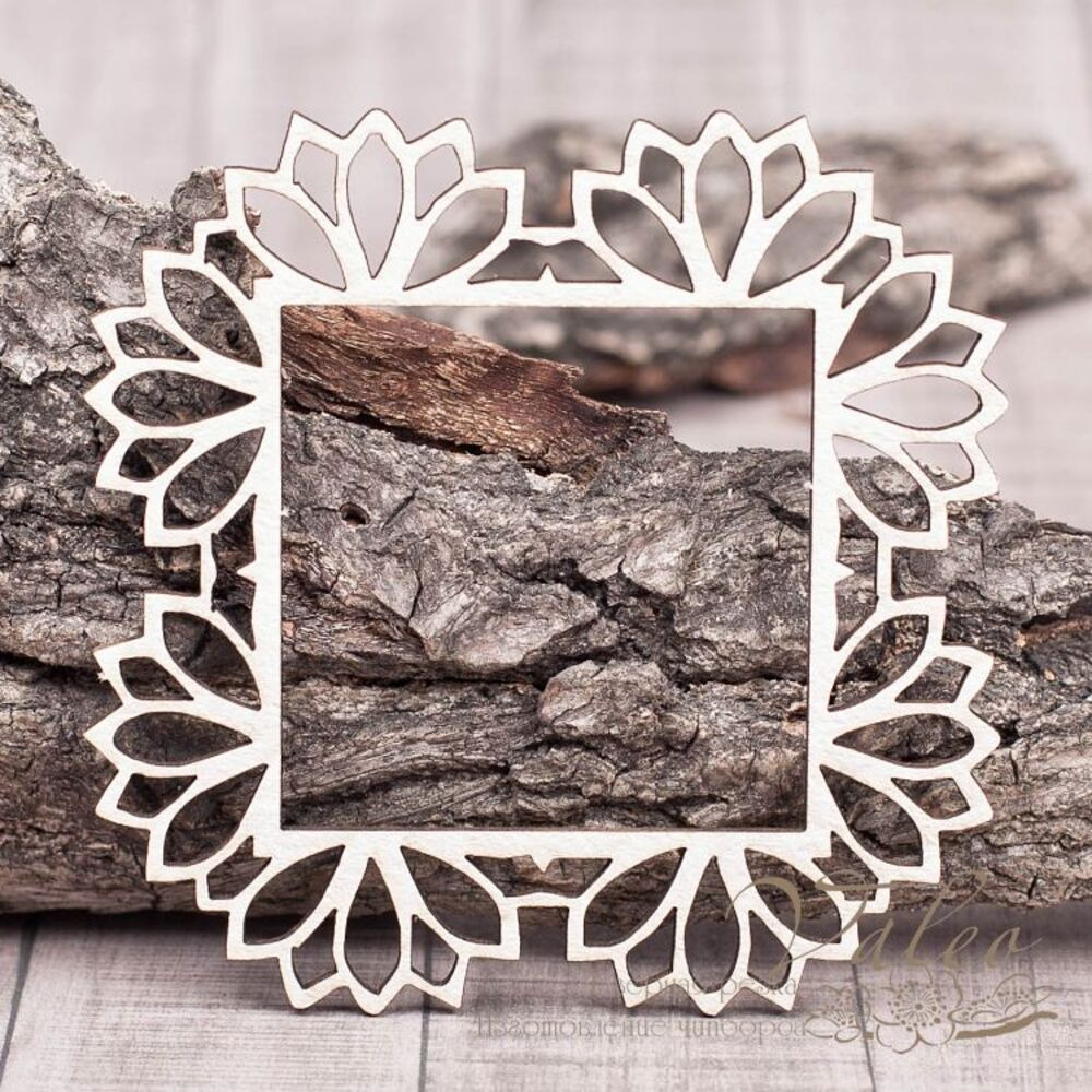 Чіпборд Valeo Ажурна рамка2 83*83мм V1304 виготовлена з пивного картону молочного кольору. Товщина картону 1,5 мм. Краї чисті, світло-коричневі. Застосовується як декоративні елементи при виготовленні альбомів, листівок, запрошень