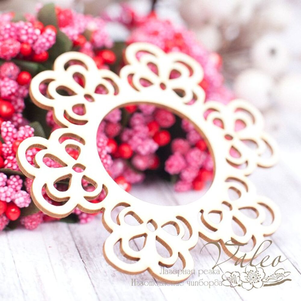 Чипборд Valeo Ажурная рамка 72*75мм V1508 изготовлен из пивного картона молочного цвета. Толщина картона 1,5мм. Края чистые, светло коричневые. Применяется в качестве декоративных элементов при изготовлении альбомов, открыток, пригласительных