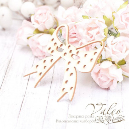 Чіпборд Valeo Бантик 56*54мм V2076 виготовлений із пивного картону молочного кольору. Товщина картону 1,5 мм. Краї чисті, світло-коричневі. Застосовується як декоративні елементи при виготовленні альбомів, листівок, запрошень
