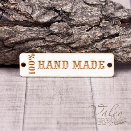 Чіпборд Valeo бирка Hand made1 60*15мм V1370 виготовлений із пивного картону молочного кольору. Товщина картону 1,5 мм. Краї чисті, світло-коричневі. Застосовується як декоративні елементи при виготовленні альбомів, листівок, запрошень