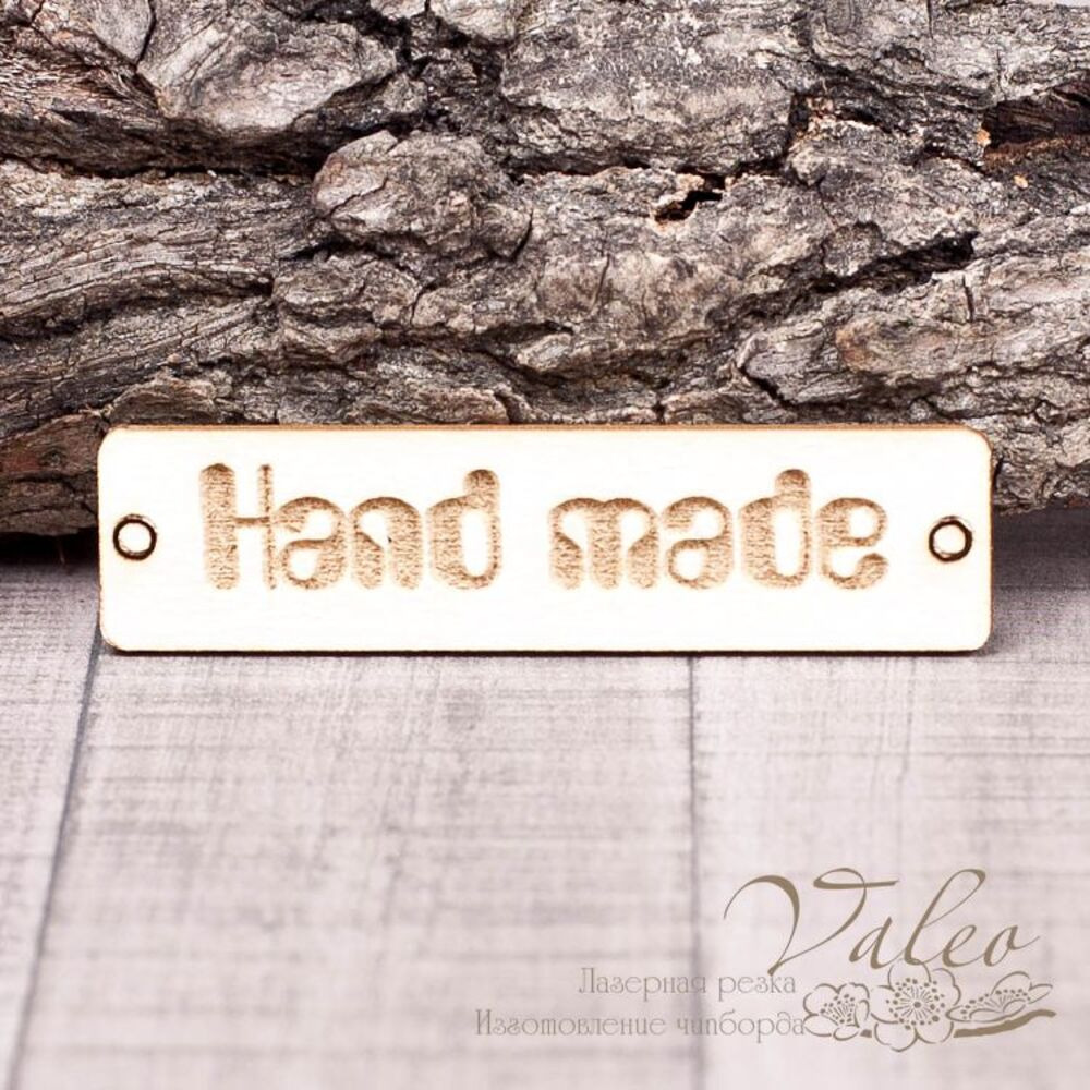 Чіпборд Valeo бирка Hand made6 60*15мм V1375 виготовлений із пивного картону молочного кольору. Товщина картону 1,5 мм. Краї чисті, світло-коричневі. Застосовується як декоративні елементи при виготовленні альбомів, листівок, запрошень