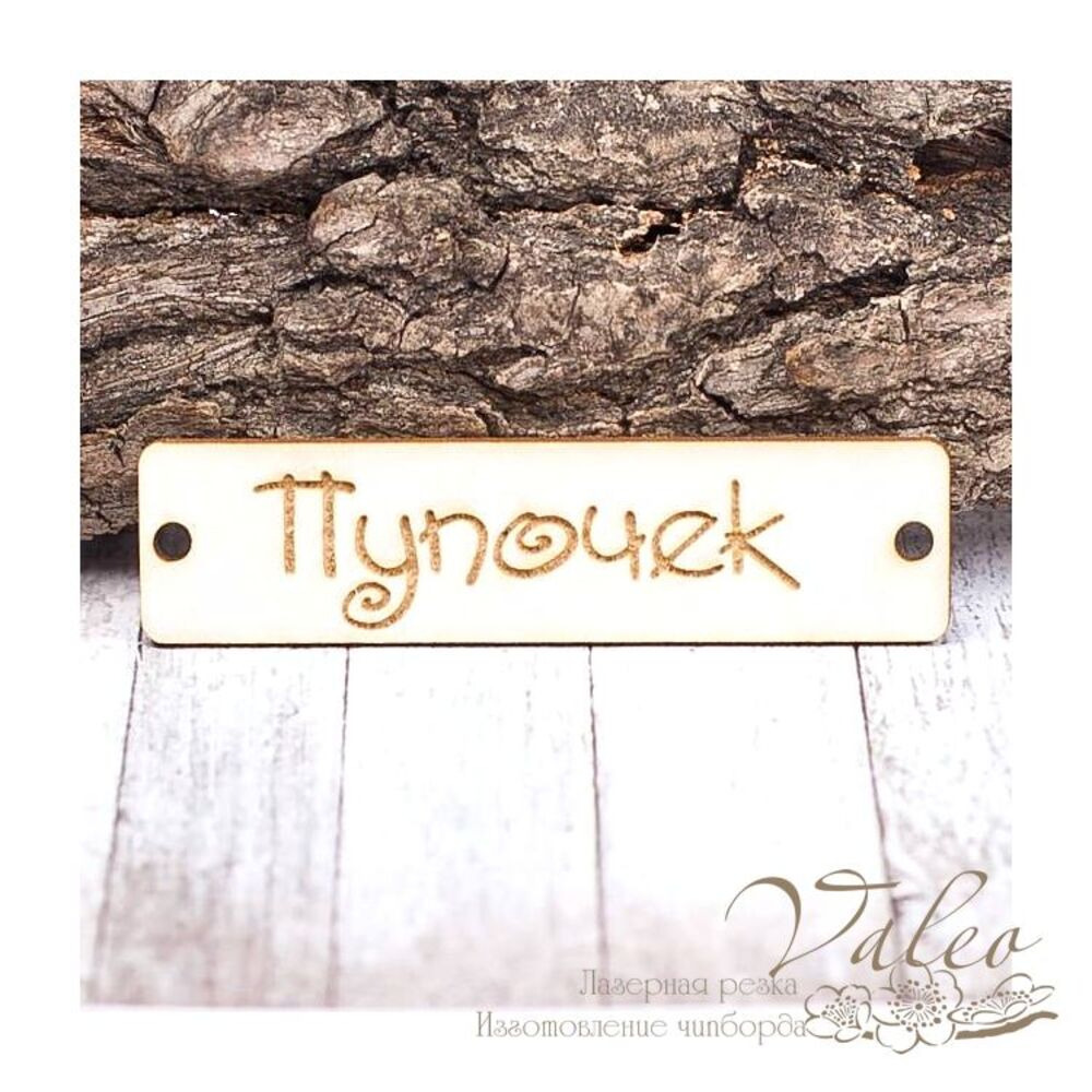 Чіпборд Valeo бірка Пупочек1 60*15мм V1405 виготовлений з пивного картону молочного кольору. Товщина картону 1,5 мм. Краї чисті, світло-коричневі. Застосовується як декоративні елементи при виготовленні альбомів, листівок, запрошень