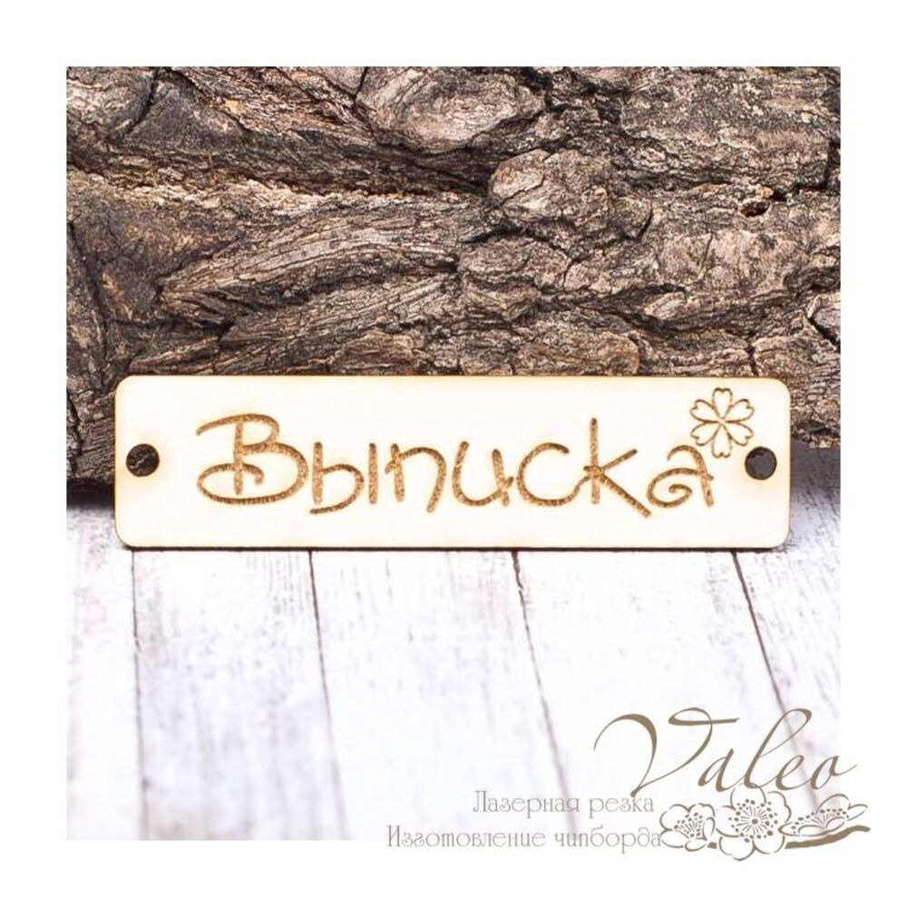 Чіпборд Valeo бирка Виписка3 60*15мм V1434 виготовлений із пивного картону молочного кольору. Товщина картону 1,5 мм. Краї чисті, світло-коричневі. Застосовується як декоративні елементи при виготовленні альбомів, листівок, запрошень
