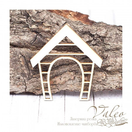 Чіпборд Valeo Будка 44*48мм V1464 виготовлений із пивного картону молочного кольору. Товщина картону 1,5 мм. Краї чисті, світло-коричневі. Застосовується як декоративні елементи при виготовленні альбомів, листівок, запрошень
