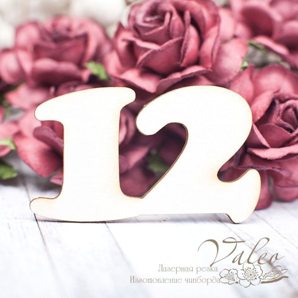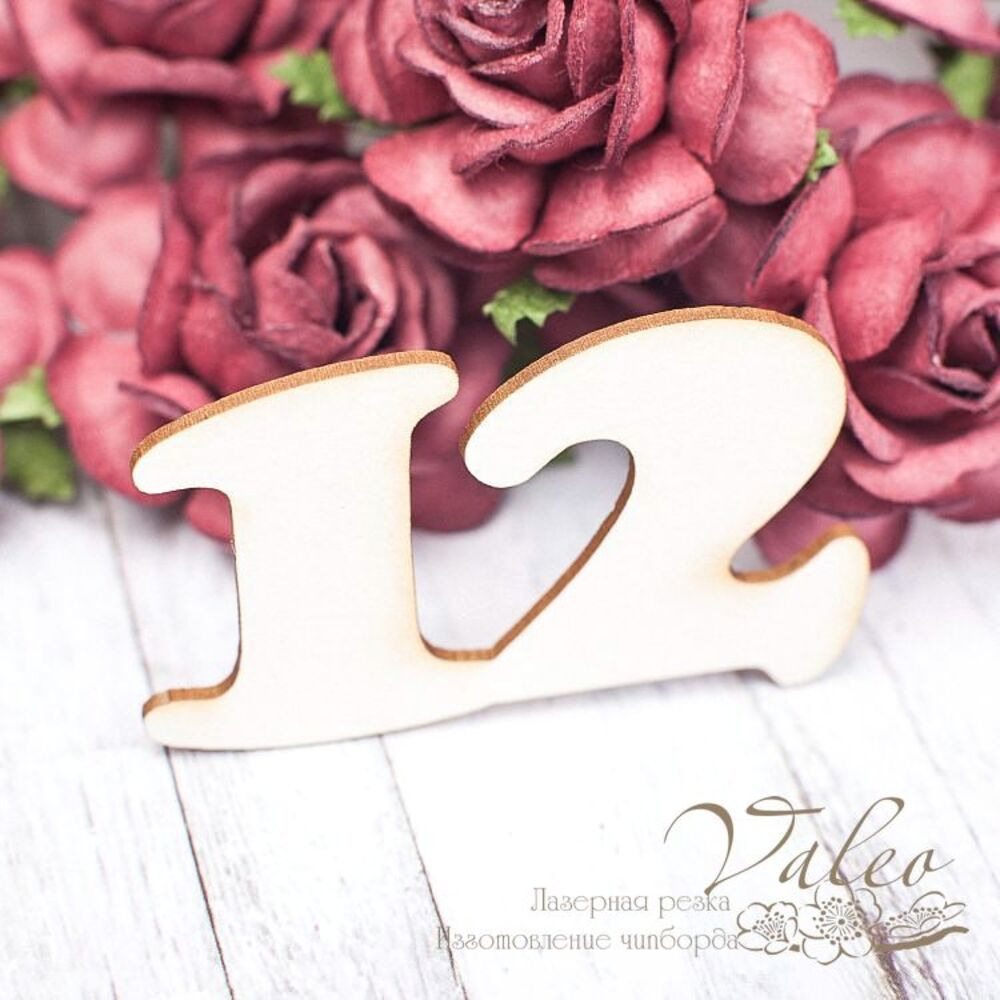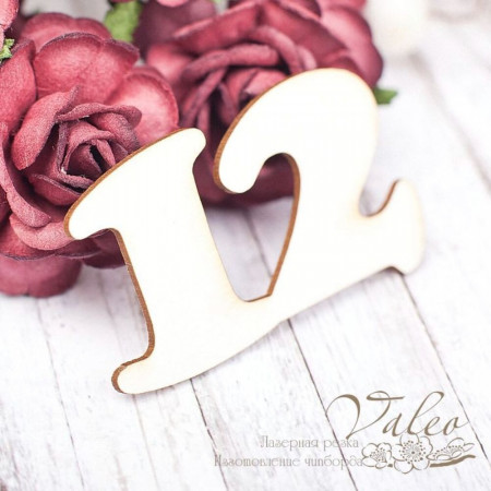 Чіпборд Valeo Цифра 12 53*32мммм V1615 виготовлений із пивного картону молочного кольору. Товщина картону 1,5 мм. Краї чисті, світло-коричневі.Застосовується як декоративні елементи при виготовленні альбомів, листівок, запрошення