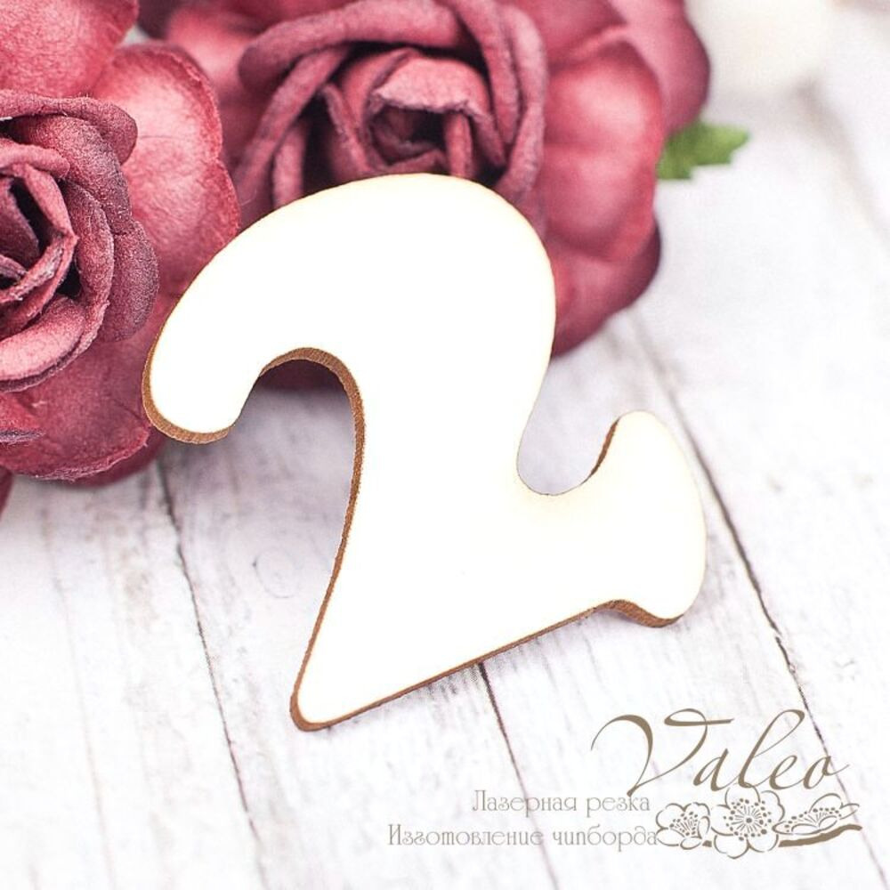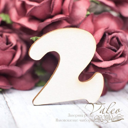 Чипборд Valeo Цифра 2 32 * 30мм V1604 виготовлений з пивного картону молочного кольору. Товщина картону 1,5 мм. Краї чисті, світло-коричневі. Застосовується як декоративні елементи при виготовленні альбомів, листівок, запрошень