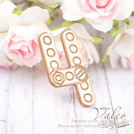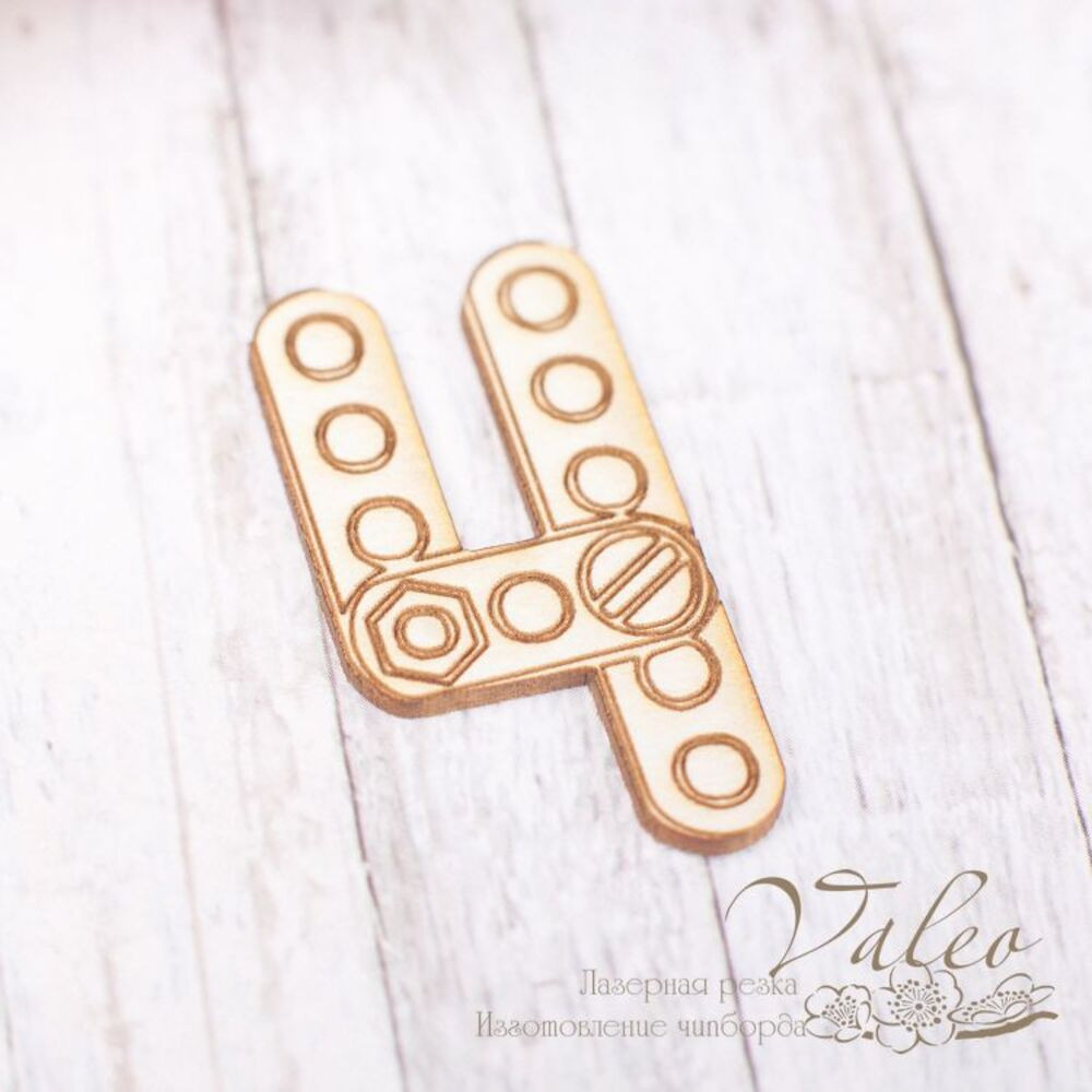 Чіпборд Valeo Цифра4 18*34мм V1855 виготовлений із пивного картону молочного кольору. Товщина картону 1,5 мм. Краї чисті, світло-коричневі. Застосовується як декоративні елементи при виготовленні альбомів, листівок, запрошень