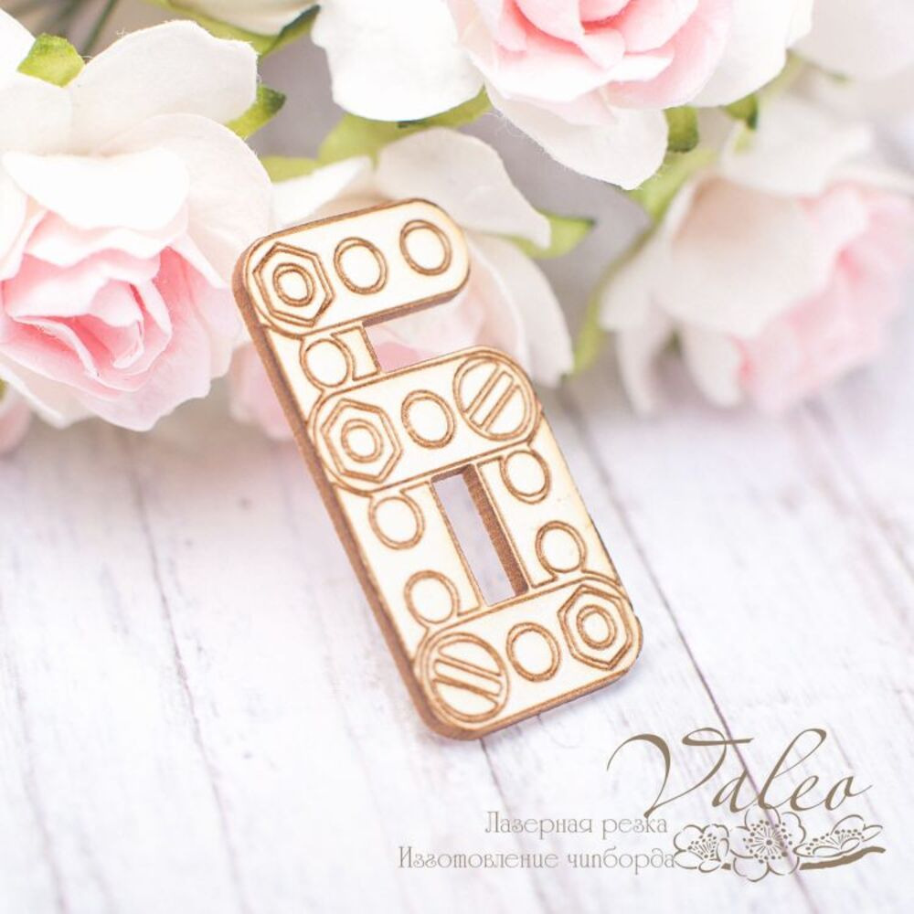 Чіпборд Valeo Цифра6 18*34мм V1849 виготовлений із пивного картону молочного кольору. Товщина картону 1,5 мм. Краї чисті, світло-коричневі. Застосовується як декоративні елементи при виготовленні альбомів, листівок, запрошень
