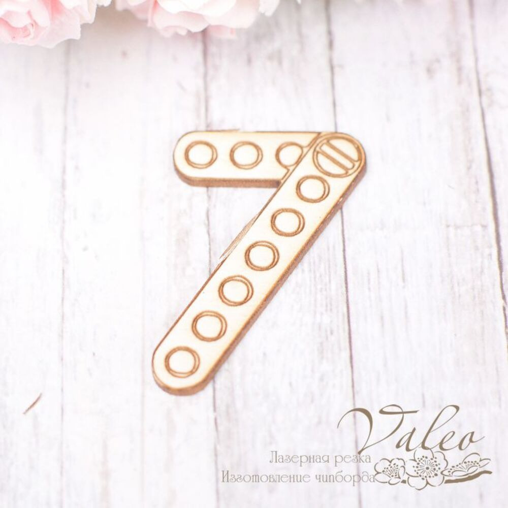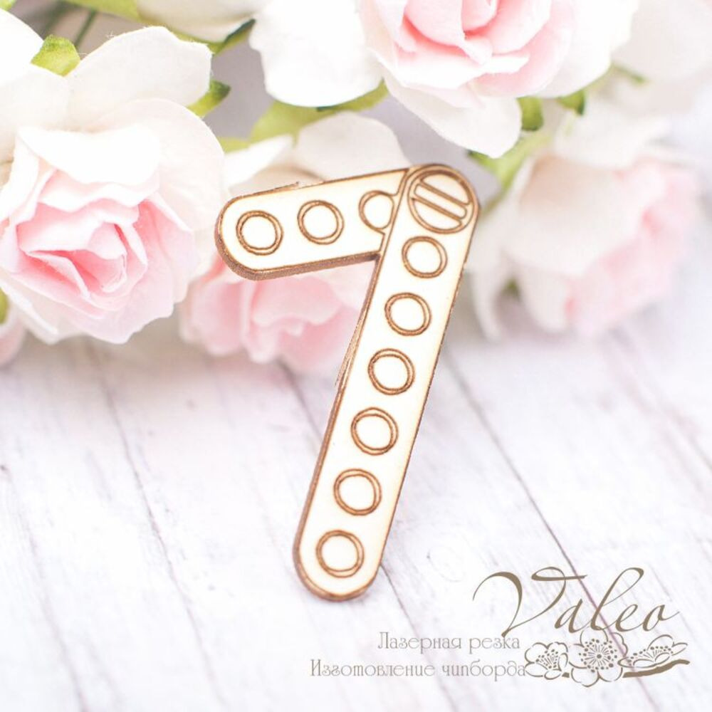 Чіпборд Valeo Цифра7 24*34мм V1853 виготовлений із пивного картону молочного кольору. Товщина картону 1,5 мм. Краї чисті, світло-коричневі. Застосовується як декоративні елементи при виготовленні альбомів, листівок, запрошень