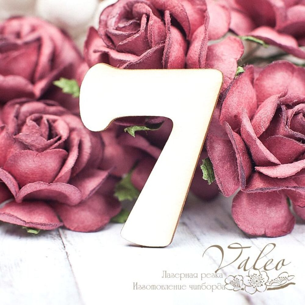 Чипборд Valeo Цифра7 38*30мм V1609 изготовлен из пивного картона молочного цвета. Толщина картона 1,5мм. Края чистые, светло коричневые. Применяется в качестве декоративных элементов при изготовлении альбомов, открыток, пригласительных