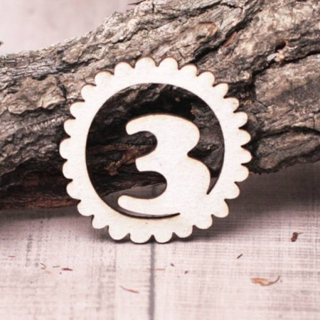 Чіпборд Valeo Цифра у колі 3 40*40мм V1135 виготовлена з пивного картону молочного кольору. Товщина картону 1,5 мм.Краї чисті, світло-коричневі. Застосовується як декоративні елементи при виготовленні альбомів, листівок, запрошення