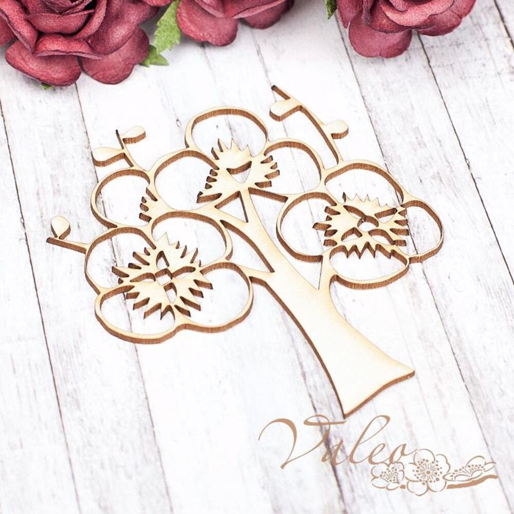 Чіпборд Valeo Дерево 66*80мм V1692 виготовлений із пивного картону молочного кольору. Товщина картону 1,5 мм. Краї чисті, світло-коричневі. Застосовується як декоративні елементи при виготовленні альбомів, листівок, запрошень