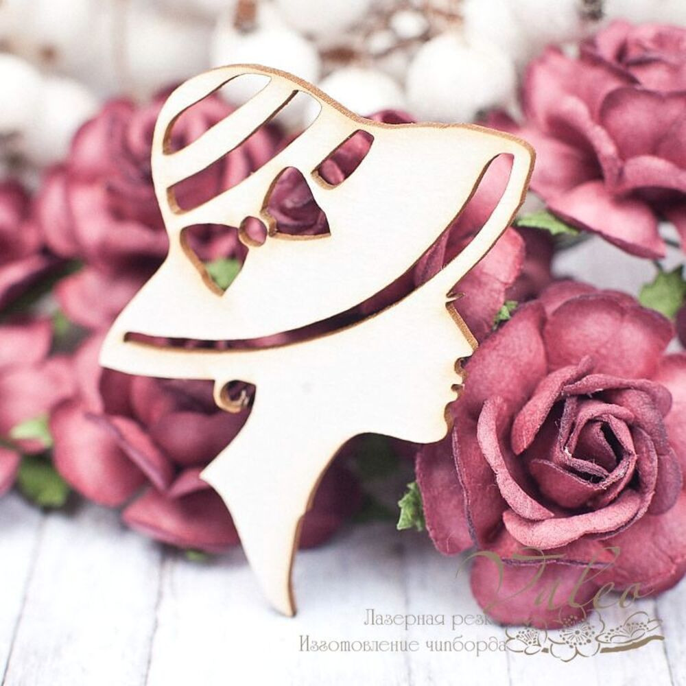 Чіпборд Valeo Дівчина у капелюсі 43*60мм V1675 виготовлений із пивного картону молочного кольору. Товщина картону 1,5 мм. Краї чисті, світло-коричневі. Застосовується як декоративні елементи при виготовленні альбомів, листівок, запрошень