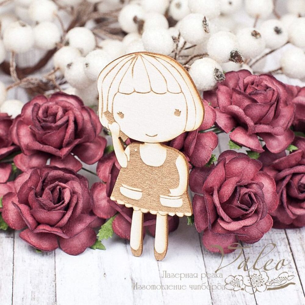 Чіпборд Valeo Дівчинка 39*80мм V1705 виготовлений із пивного картону молочного кольору. Товщина картону 1,5 мм. Краї чисті, світло-коричневі. Застосовується як декоративні елементи при виготовленні альбомів, листівок, запрошень