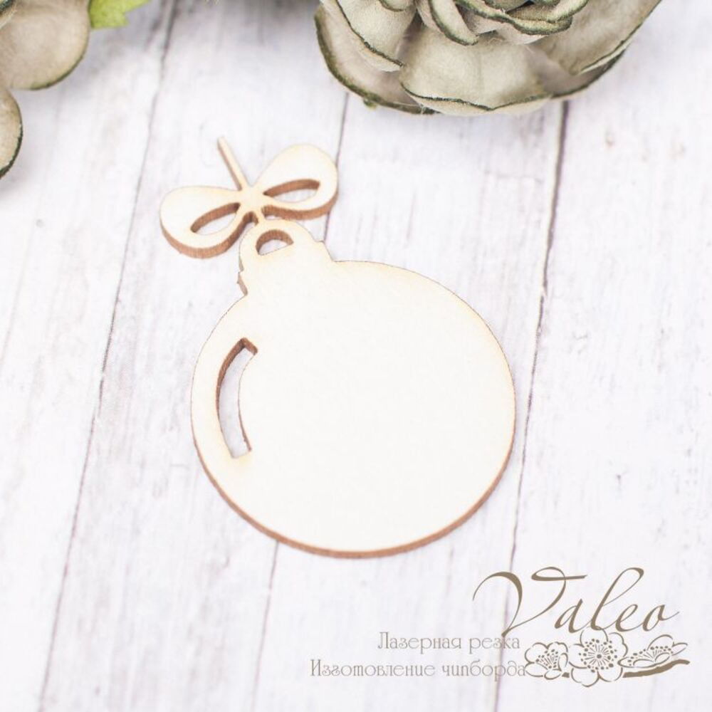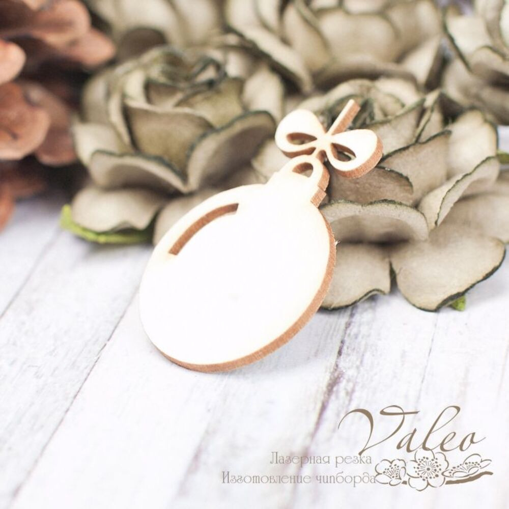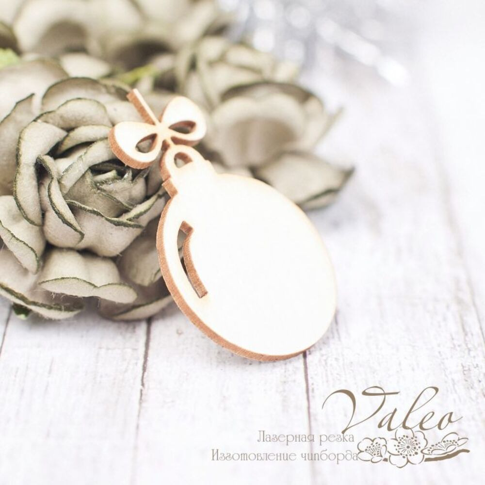 Чипборд Valeo Елочный шар 25*39мм V2270 изготовлен из пивного картона молочного цвета. Толщина картона 1,5мм. Края чистые, светло коричневые. Применяется в качестве декоративных элементов при изготовлении альбомов, открыток, пригласительных