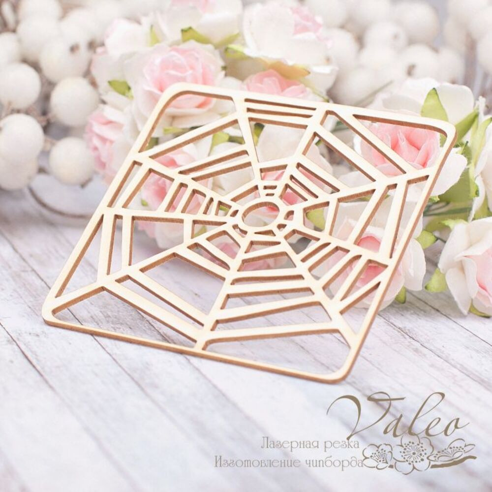 Чіпборд Valeo фон Павутина 74*75мм V1921 виготовлений із пивного картону молочного кольору. Товщина картону 1,5 мм.Краї чисті, світло-коричневі. Застосовується як декоративні елементи при виготовленні альбомів, листівок, запрошень