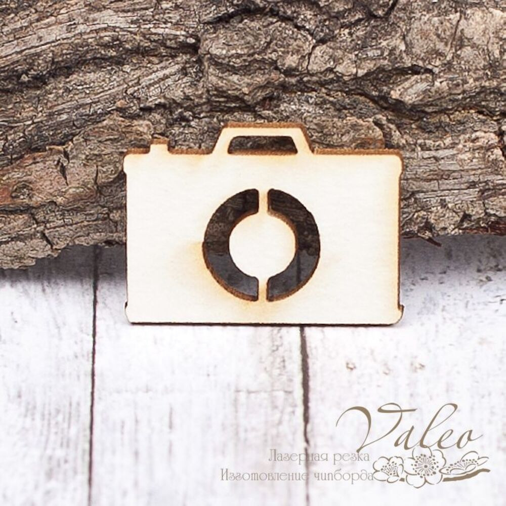 Чіпборд Valeo Фотоапарат3 24*17мм V1488 виготовлений із пивного картону молочного кольору. Товщина картону 1,5 мм. Краї чисті, світло-коричневі. Застосовується як декоративні елементи при виготовленні альбомів, листівок, запрошень