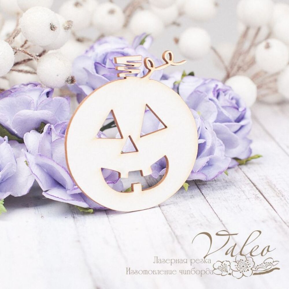 Чіпборд Valeo Гарбуз 46*49мм V2155 виготовлений із пивного картону молочного кольору. Товщина картону 1,5 мм. Краї чисті, світло-коричневі. Застосовується як декоративні елементи при виготовленні альбомів, листівок, запрошень
