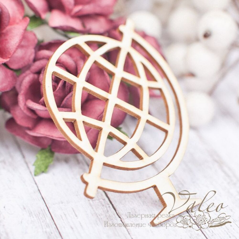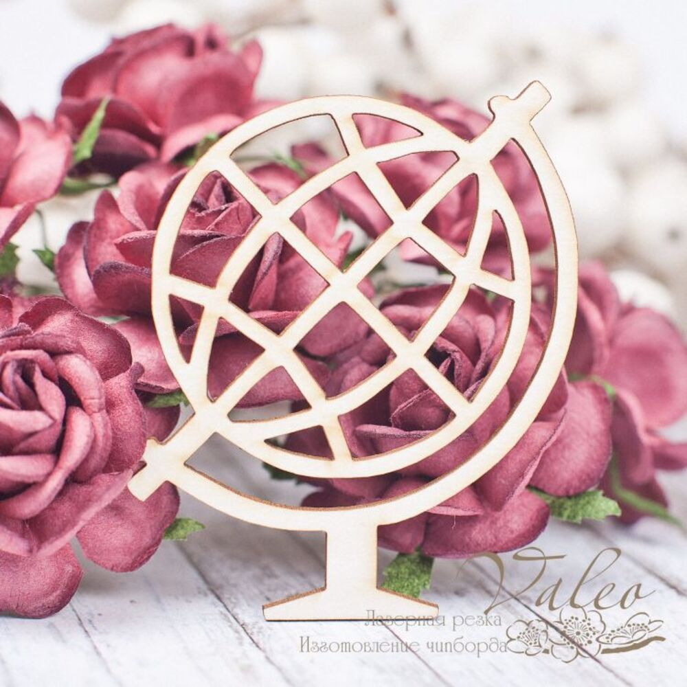 Чіпборд Valeo Глобус 50*60мм V1758 виготовлений із пивного картону молочного кольору. Товщина картону 1,5 мм. Краї чисті, світло-коричневі. Застосовується як декоративні елементи при виготовленні альбомів, листівок, запрошень
