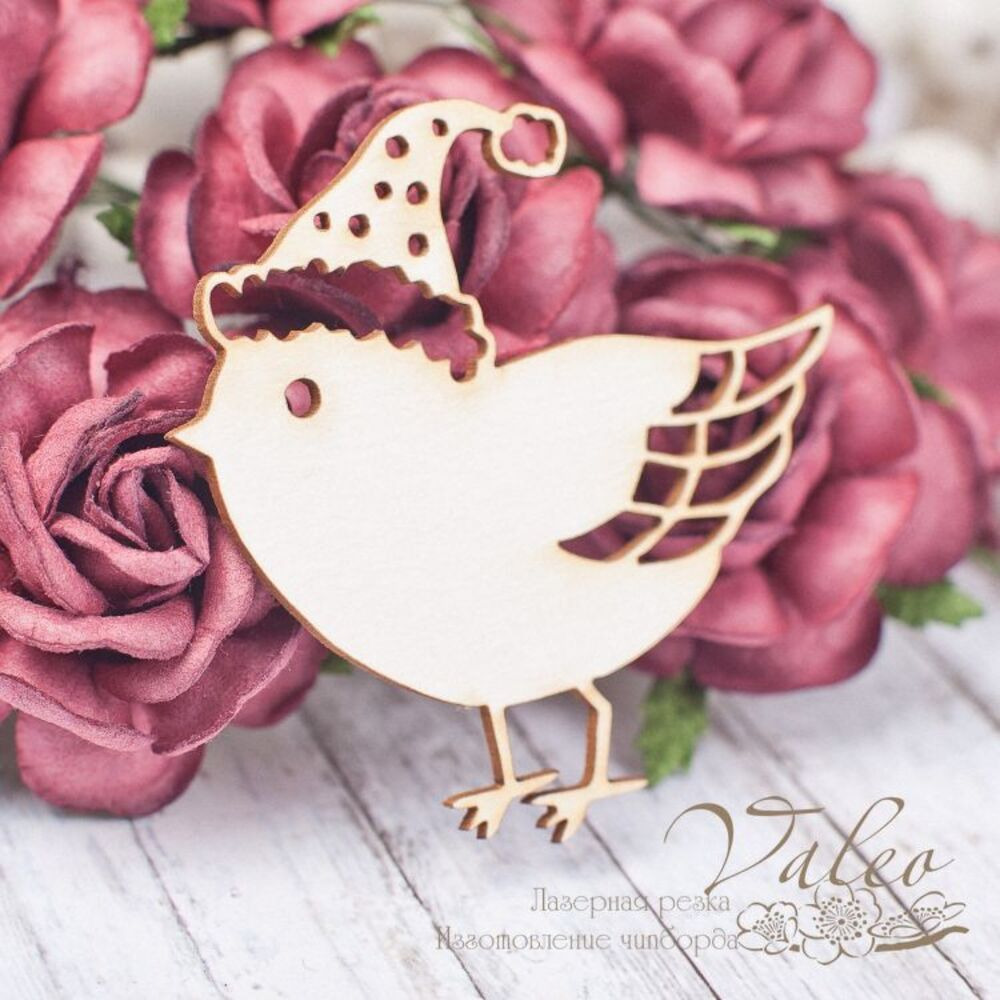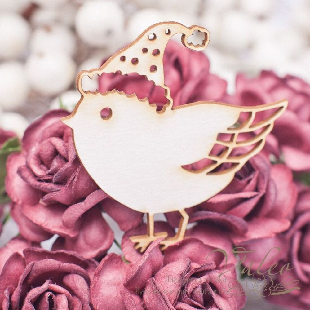 Чіпборд Valeo Горобець 52*53мм V1690 виготовлений із пивного картону молочного кольору. Товщина картону 1,5 мм. Краї чисті, світло-коричневі. Застосовується як декоративні елементи при виготовленні альбомів, листівок, запрошень