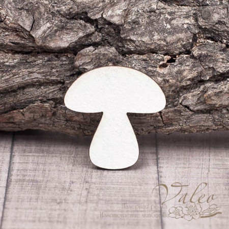 Чипборд Valeo Грибочок 26*28мм V1267 виготовлений із пивного картону молочного кольору. Товщина картону 1,5 мм. Краї чисті, світло-коричневі. Застосовується як декоративні елементи при виготовленні альбомів, листівок, запрошень
