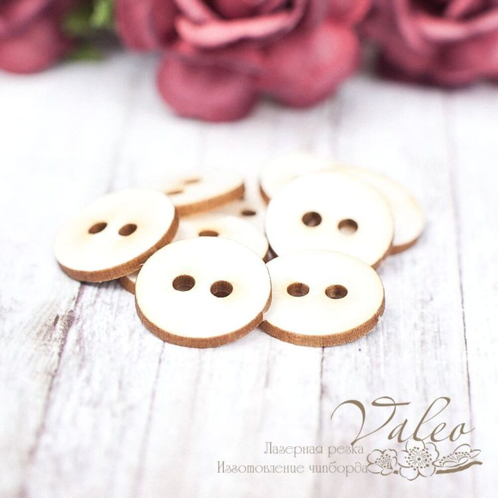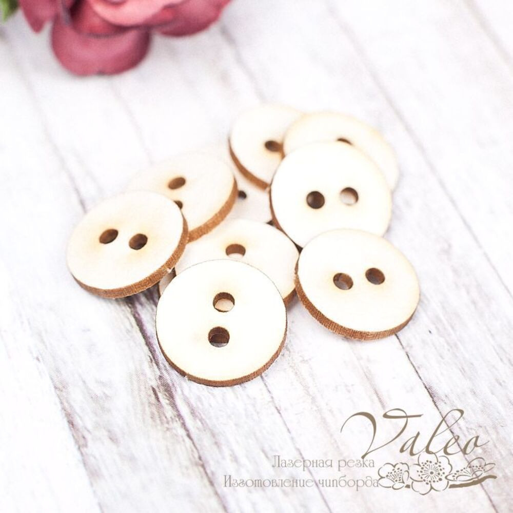Чіпборд Valeo Гудзики 10шт 15*15мм V1644 виготовлений з пивного картону молочного кольору. Товщина картону 1,5 мм. Краї чисті, світло-коричневі. Застосовується як декоративні елементи при виготовленні альбомів, листівок, запрошень