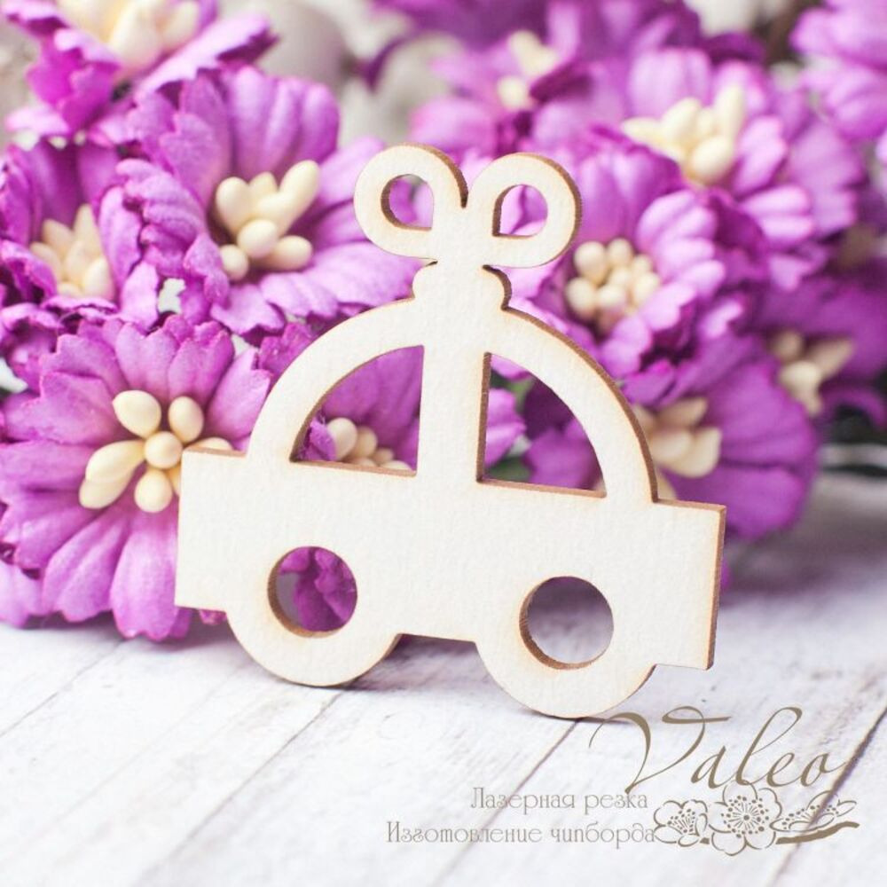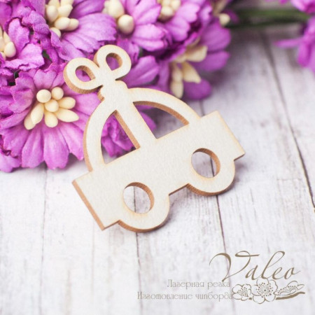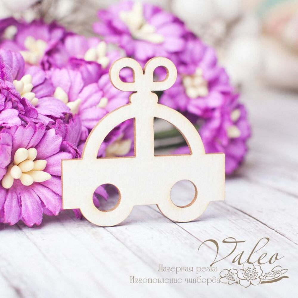 Чіпборд Valeo Іграшка дитяча машина 36*36мм V2556 виготовлена з пивного картону молочного кольору. Товщина картону 1,5 мм. Краї чисті, світло-коричневі. Застосовується як декоративні елементи при виготовленні альбомів, листівок, запрошень