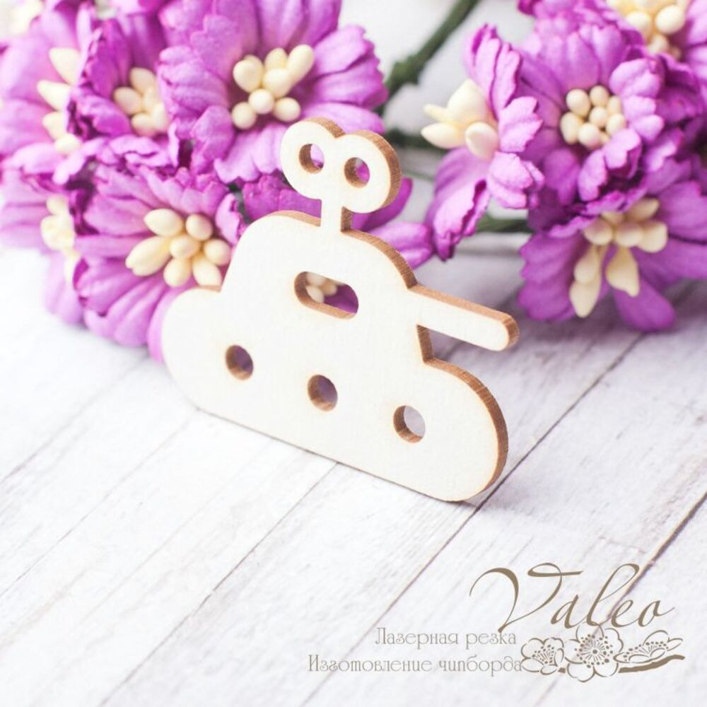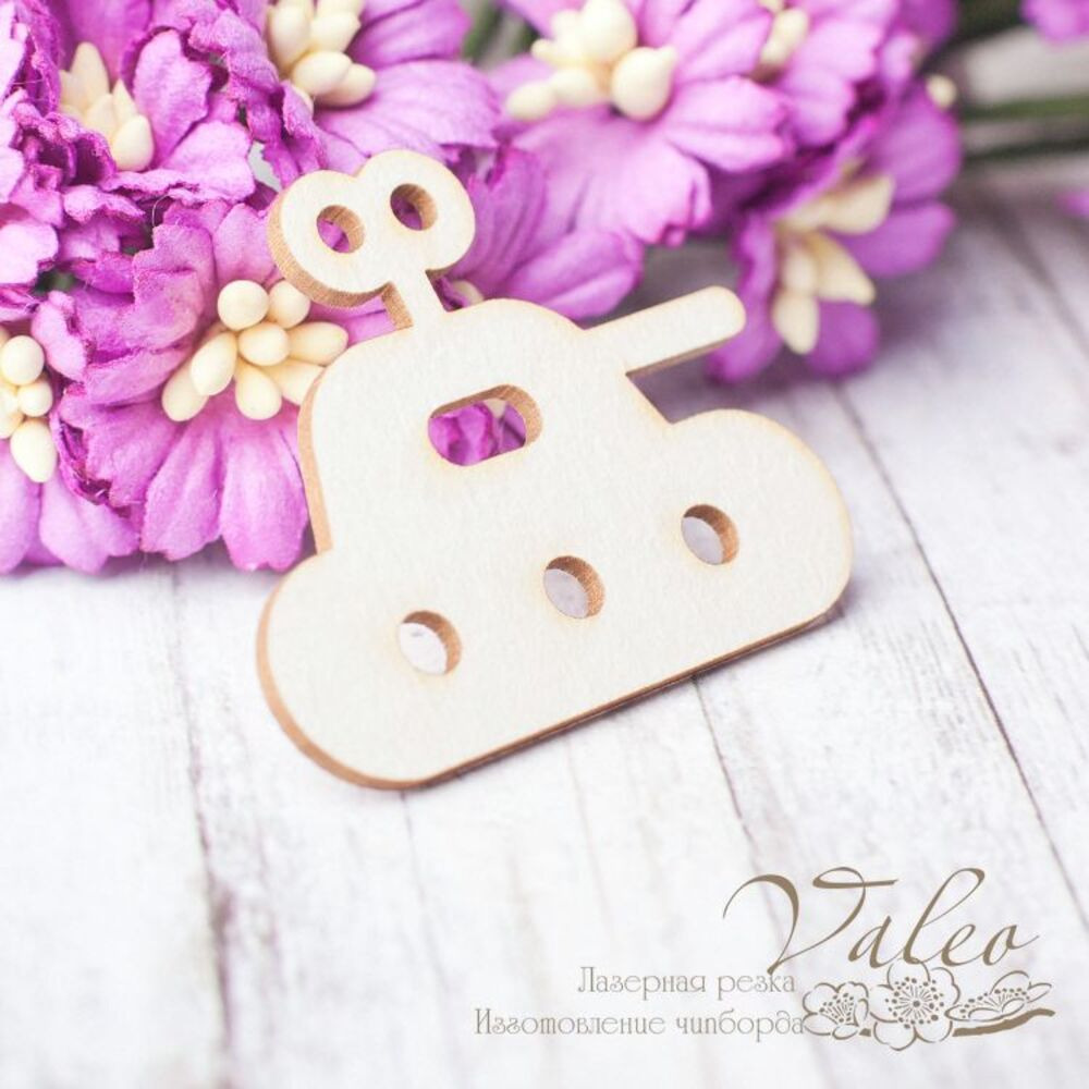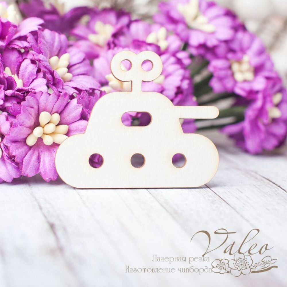 Чіпборд Valeo Іграшка дитяча танк 40*33мм V2580 виготовлена з пивного картону молочного кольору. Товщина картону 1,5 мм. Краї чисті, світло-коричневі. Застосовується як декоративні елементи при виготовленні альбомів, листівок, запрошень