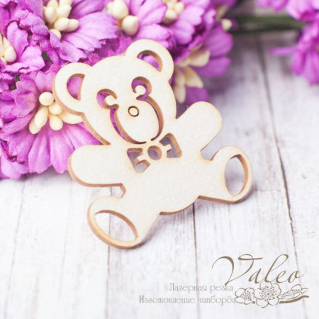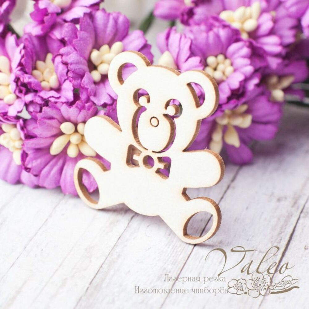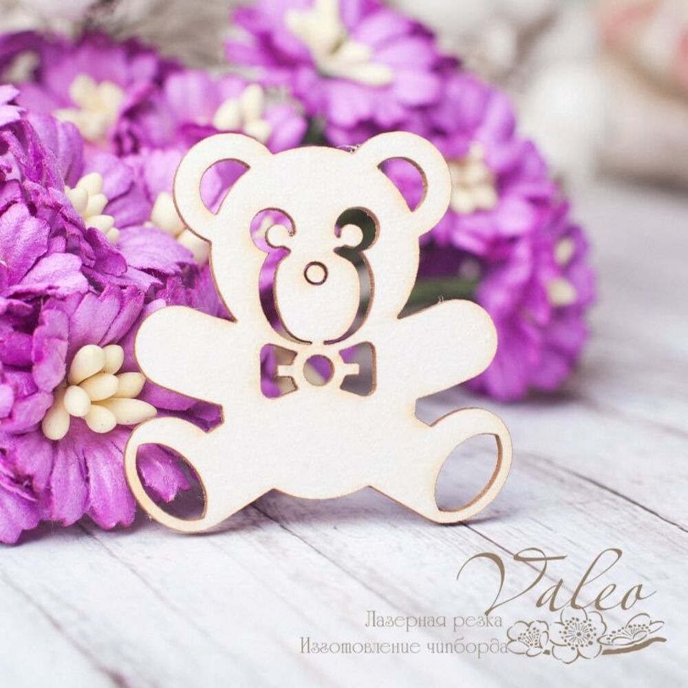 Чіпборд Valeo Іграшка дитяча ведмедик 35*36мм V2559 виготовлений із пивного картону молочного кольору. Товщина картону 1,5 мм. Краї чисті, світло-коричневі. Застосовується як декоративні елементи при виготовленні альбомів, листівок, запрошень