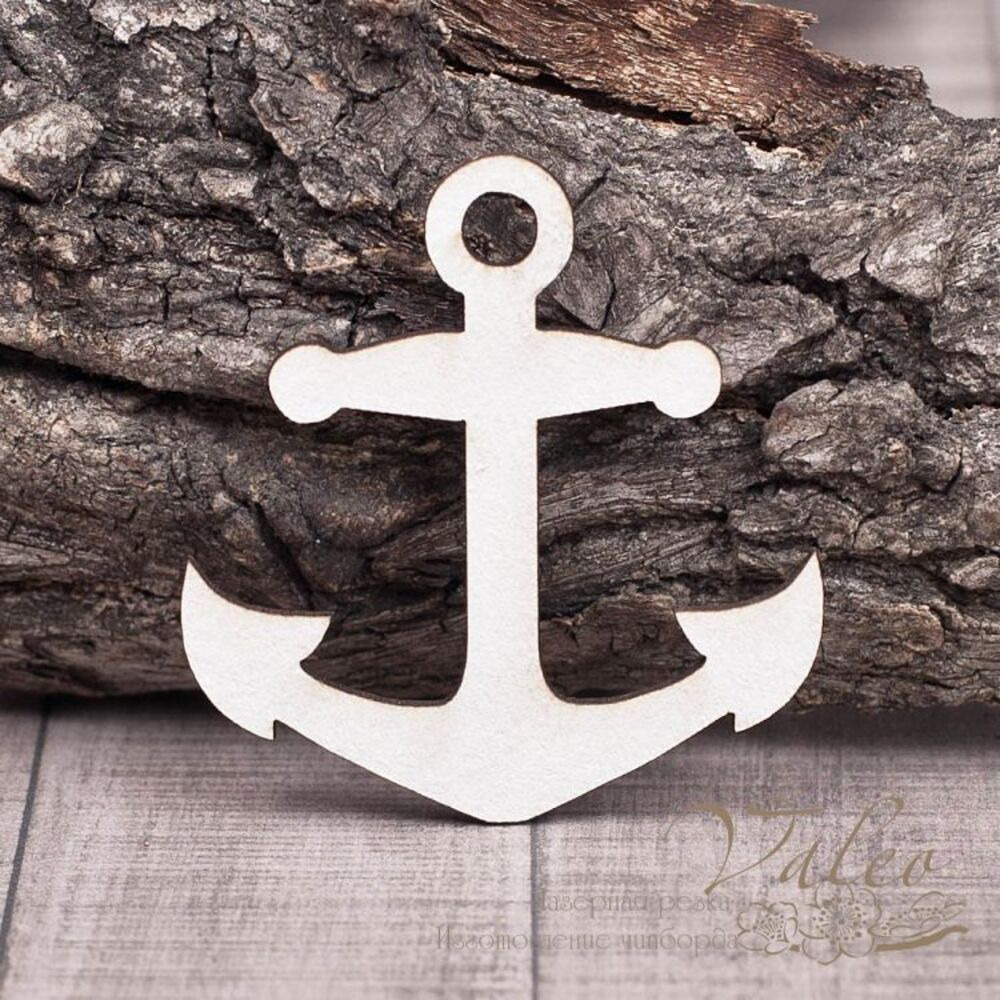 Чипборд Valeo Якорь 47*49мм V1261 изготовлен из пивного картона молочного цвета. Толщина картона 1,5мм. Края чистые, светло коричневые. Применяется в качестве декоративных элементов при изготовлении альбомов, открыток, пригласительных